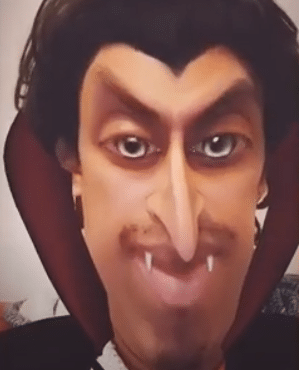 - Cool Dracula: es uno de los lentes oficiales de Snapchat respecto a halloween. Han mezclado temas caricaturescos con personajes de terror como un vampiro, logrando ser un personaje simpático. Sus dientes grandes y la cara alargada logran el realismo.